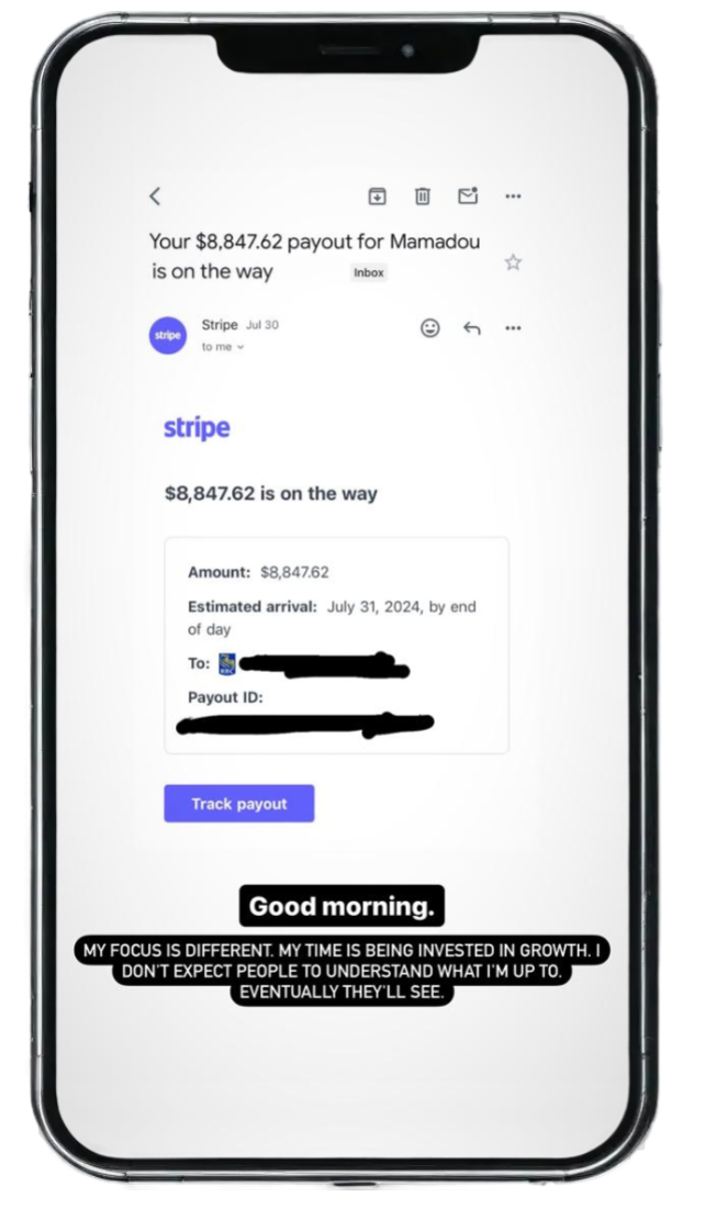 Je suis Elhadj Kane. Je viens d'une famille normale, pas spécialement riche, mais j'ai toujours voulu me faire un nom par moi-même. J'avais un rêve : celui de pouvoir être libre, aider mes proches, voyager, enfin bref… kiffer la vie ! 😁 Je me suis lancé pendant mes études au lycée il y a bientôt 5 ans. Tout n'a pas été facile, loin de là 😅 Mais à force de persévérance, les résultats sont apparus, et aujourd'hui j'ai atteint une liberté financière grâce aux E-commerce. 💸 J'accompagne des gens depuis bientôt 1 ans au sein de mon programme d'accompagnement, en parallèle de mes boutiques. Si tu es motivé(e) et persévérant(e), tu es le/la bienvenu(e) au sein de mon programme et j'espère que je vais réussir à t'aider pour changer ta vie. 🫶